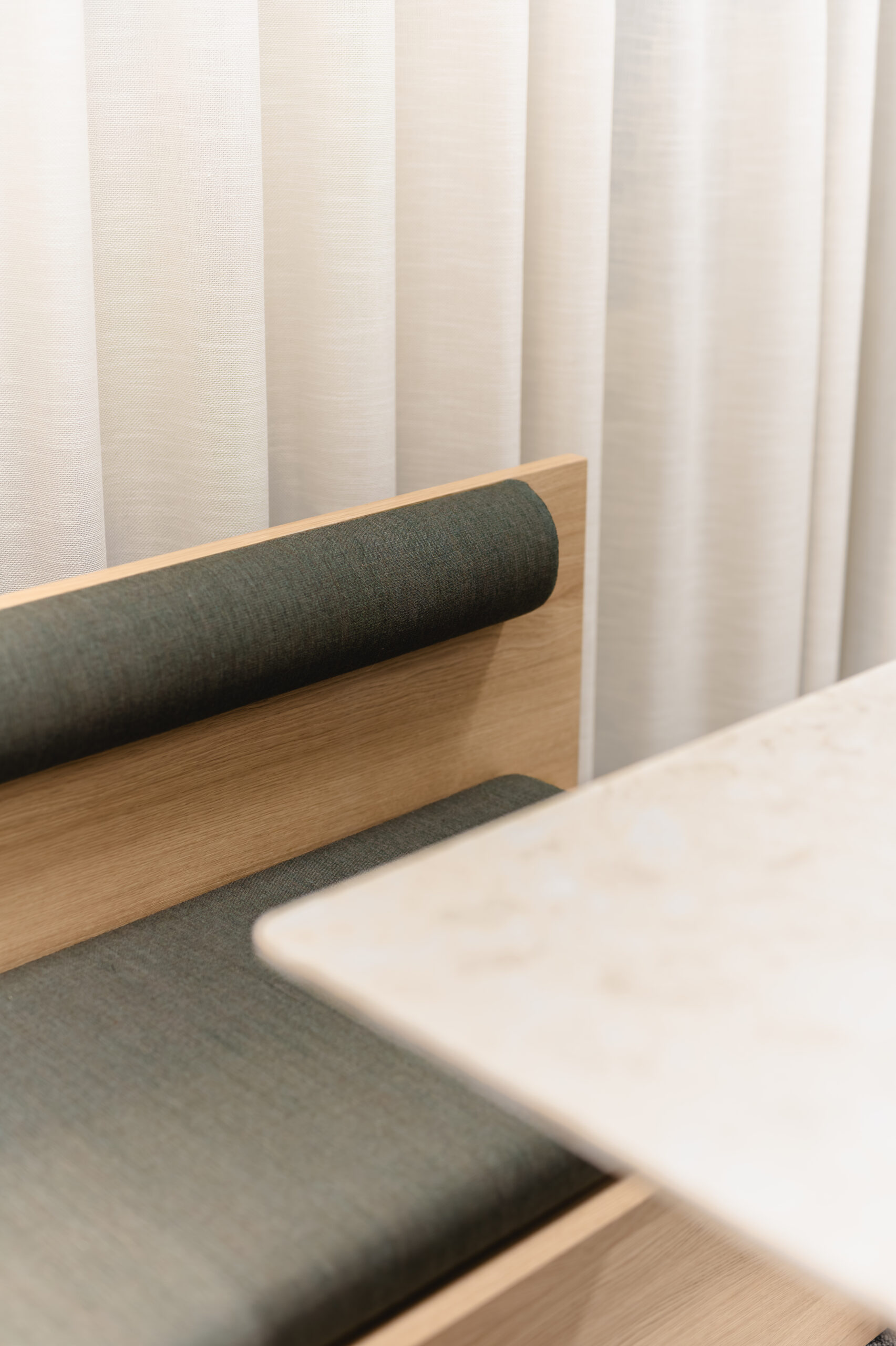Tilasta löytyi kauniita vanhoja elementtejä kuten kaakeliuuneja ja kattomaalauksia, mutta myös moderneja ratkaisuja materiaalien ja valaistuksen osalta. Tilasuunnittelussa halusimme tasapainottaa näiden välille syntynyttä kontrastia ja toimme tilaan pehmeämmän ja yhtenäisemmän sävymaailman. Muutos tehtiin hyvin kustannustehokkaasti sekä remontin, että suunnittelun osalta. Vanhoja kalusteita säilytettiin mahdollisimman paljon ja uusia hankittiin pääasiassa käytettyinä. Kierrätysaste kohteessa olikin noin 83%.